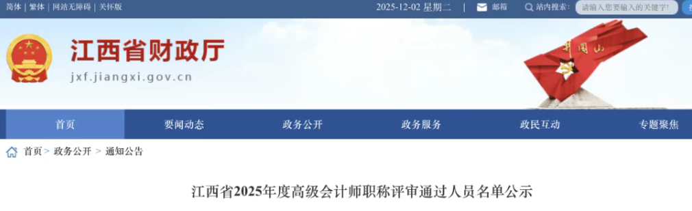 附件:江西省2025年度高级会计师职称评审通过人员名单 江西省财政厅